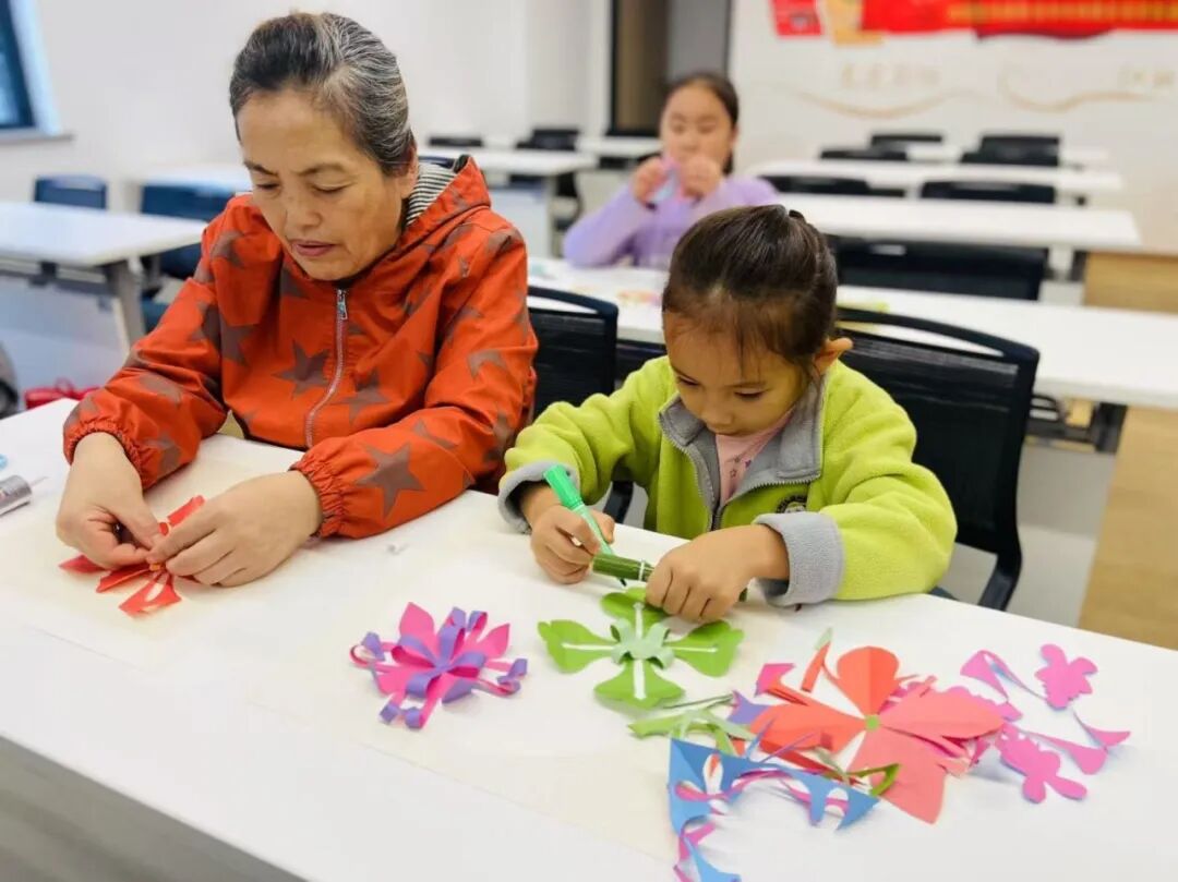 活动现场气氛热烈,专业老师首先为大家生动讲解了剪纸艺术的悠久历史、发展脉络及其独特的艺术价值,增进了居民对这项非物质文化遗产的认知。老师通过现场演示,清晰展示了平面剪纸与立体剪纸的基本技巧与核心区别,精湛的技艺引得阵阵赞叹。在互动体验环节,居民们在老师的耐心指导下,纷纷拿起剪刀,亲手实践。一张张彩纸在指尖翻转,伴随着欢声笑语,逐渐变幻出各种吉祥图案和创意造型,现场充满了成就感和欢乐气氛。